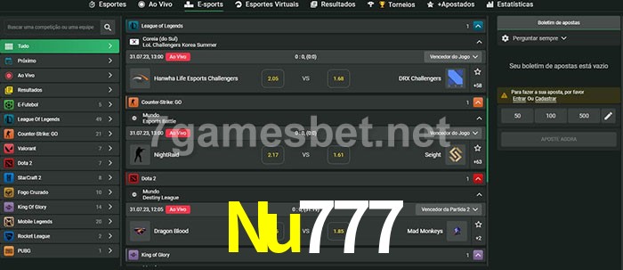 A aposta Nu777 oferece aos jogadores a experiência mais conveniente de apostas em eSports!